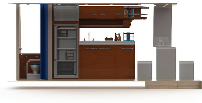 The medical unit needed to be a mobile doctors office. So working with Doctors and nurses I designed a compact office that they could see as an efficient workspace.